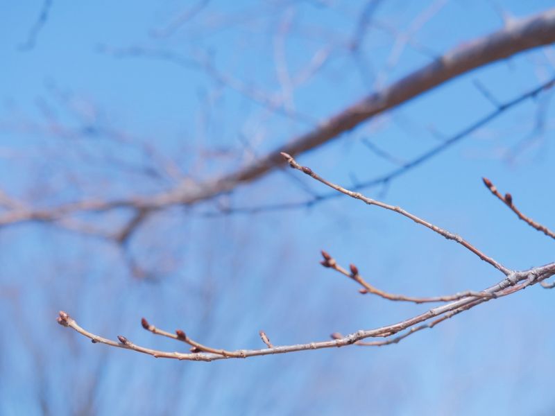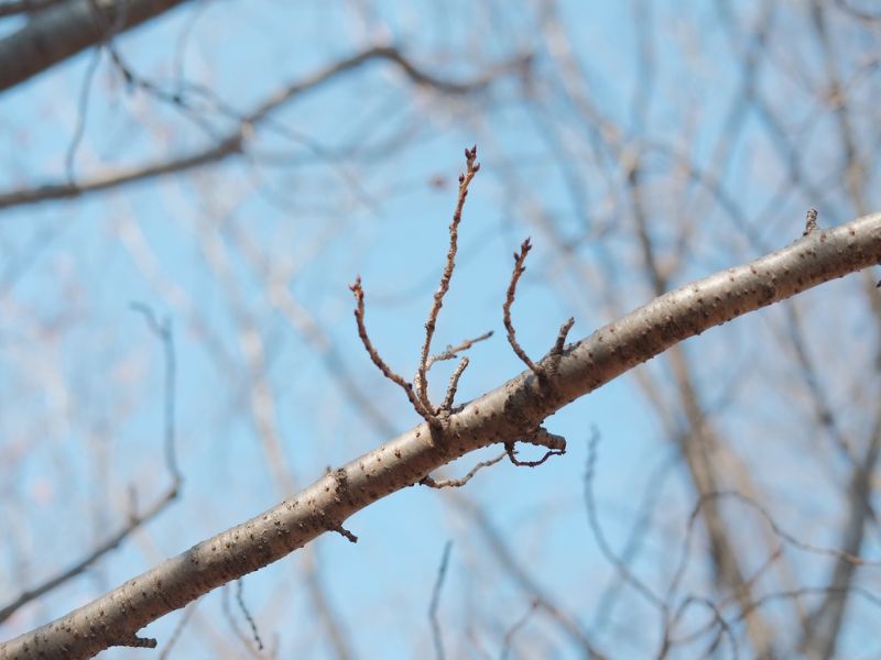 遠目には冬景色ですが、近づいてみると「ちゃんと春の準備が始まっている」ことが分かり