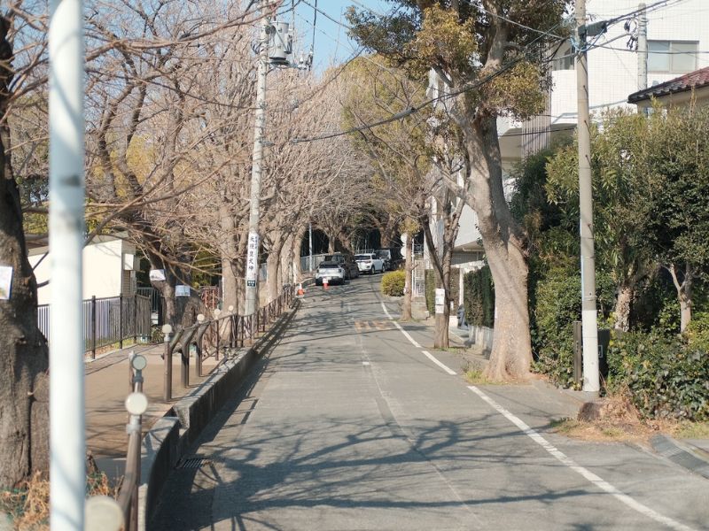 夢見ヶ崎へ続く道路沿いの桜並木は、